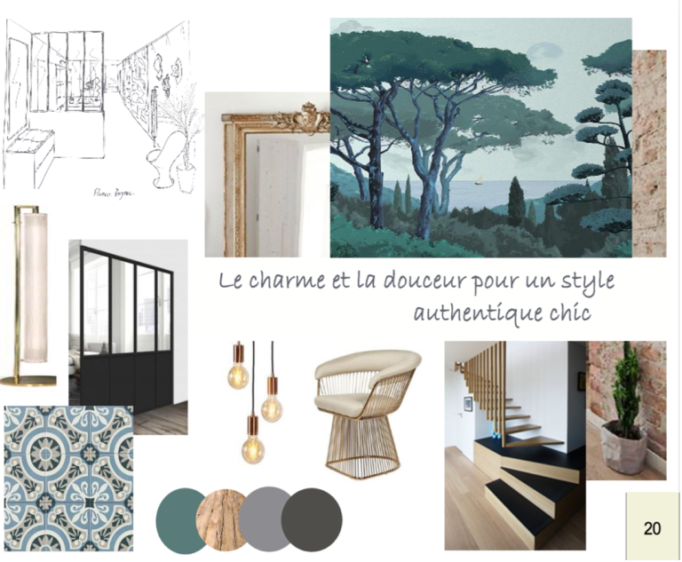 - Une page mobilier/déco par pièce avec les couleurs , les formes et les matériaux.